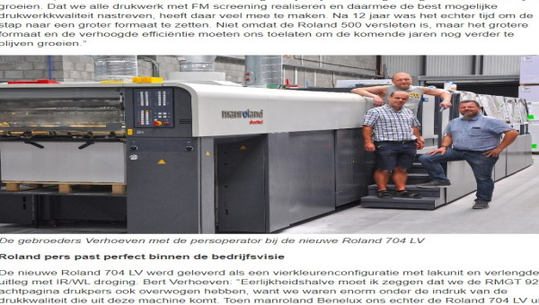 De komst van onze nieuwe pers is een onderdeel van onze investeringsplannen. De Komori vervangt twee huidige offsetpersen. Door de volledige persautomatisering en automatische kwaliteitscontrole tijdens het drukproces, wordt onze drukcapaciteit aanzienlijk vergroot. Dat is voor ons een belangrijke beweegreden geweest om onze twee eerdere generatie drukpersen te vervangen door één nieuwe drukpers. De drukpersen die vervangen worden hebben overigens prima hun diensten bewezen.’