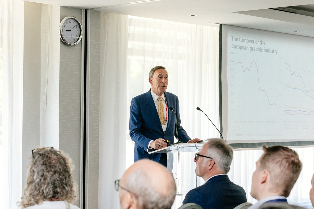 Intergraf is de wereldwijde koepel van brancheorganisaties in de grafische sector. Voorzitter Cees Verweij belichtte de tien belangrijkste trends in de grafische industrie, met name ook in Europa. Hij wees op de sterk gestegen papierprijzen en illustreerde dit met nieuwe gegevens uit Duitsland. In april 2019 hadden de prijzen van 45 grams krantenpapier daar een hoogtepunt van 540 euro per ton bereikt.