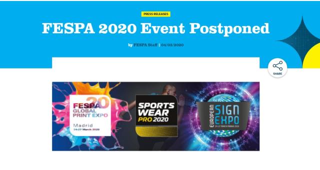 Fespa heeft gisteren bekend gemaakt de signbeurs in Madrid uit te stellen. De aanleiding is het heersende coronavirus.